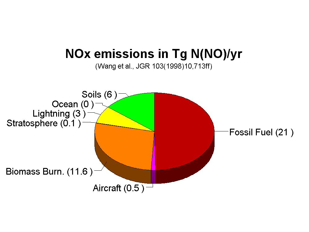 Figure 4: Sources of nitrogen oxides (NOx) to the troposphere (data from Wang et al., (1998))