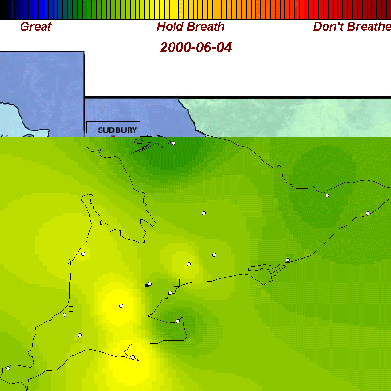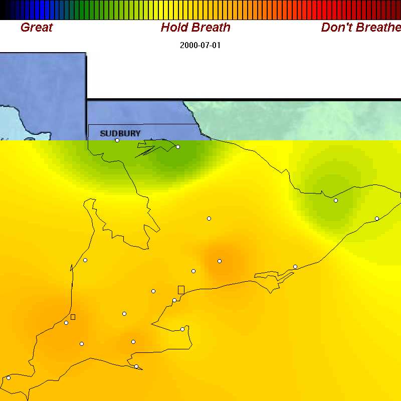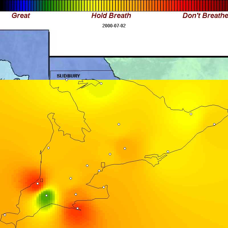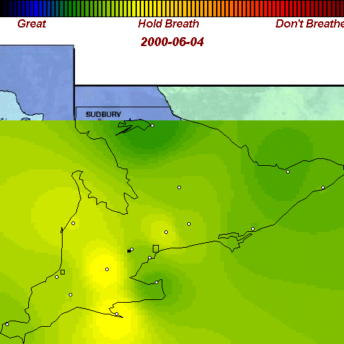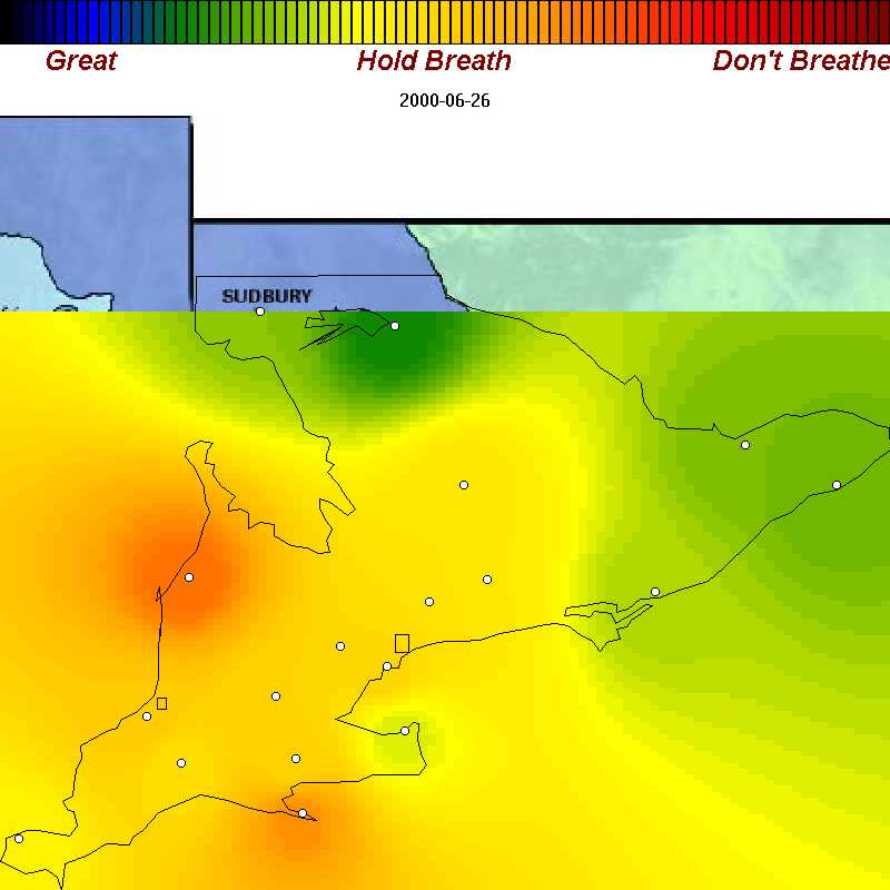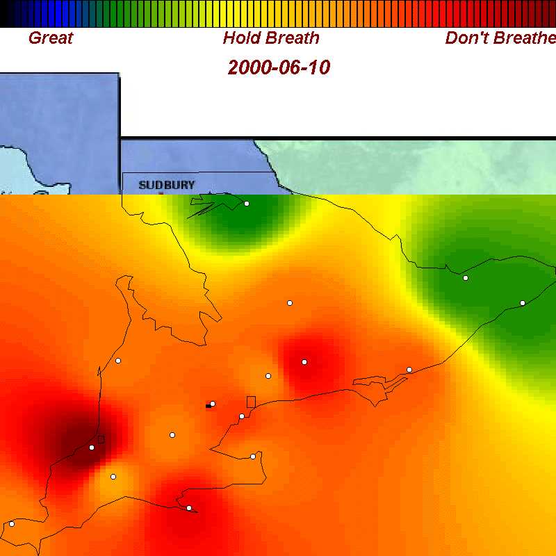 | June 10, 2000 | Bad air covers all of southern Ontario except for the eastern counties |