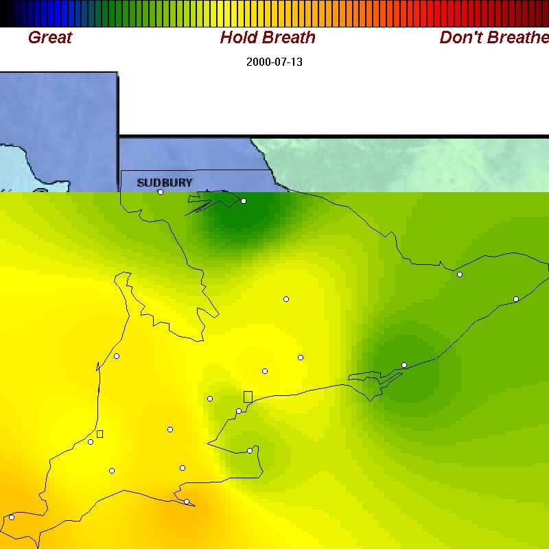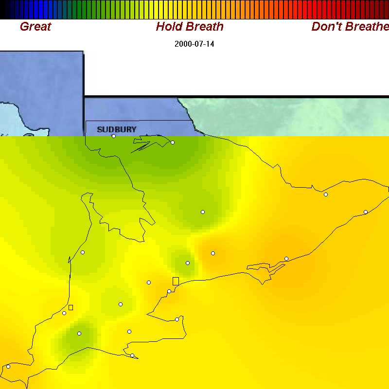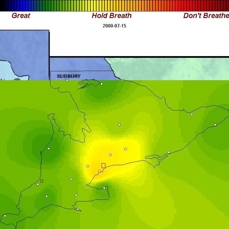 | July 15, 2000 | The way people expect it to be: poor air only in Greater Toronto area. This is the exception, not the rule |