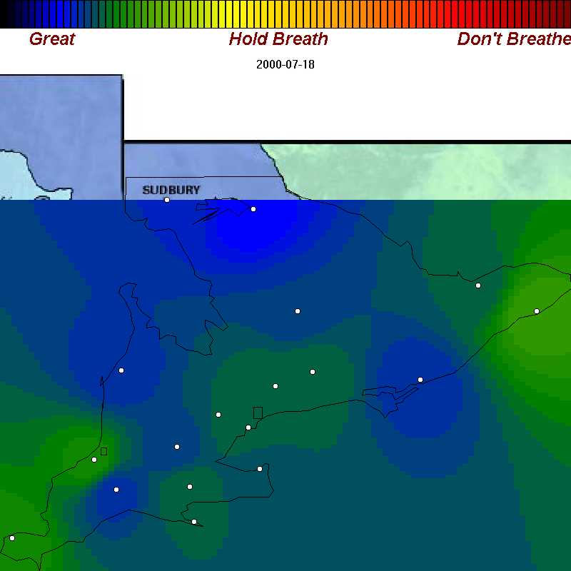| July 26, 2000 | Poor air everywhere south of North Bay. |