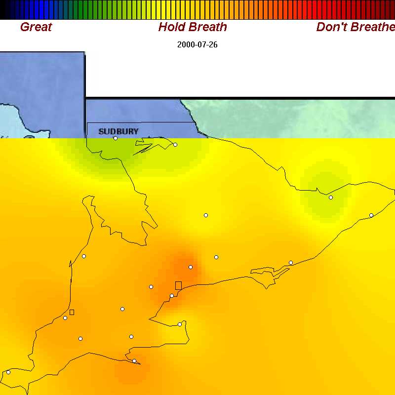 | August 29, 2000 | The next day: poor air everywhere except Toronto |